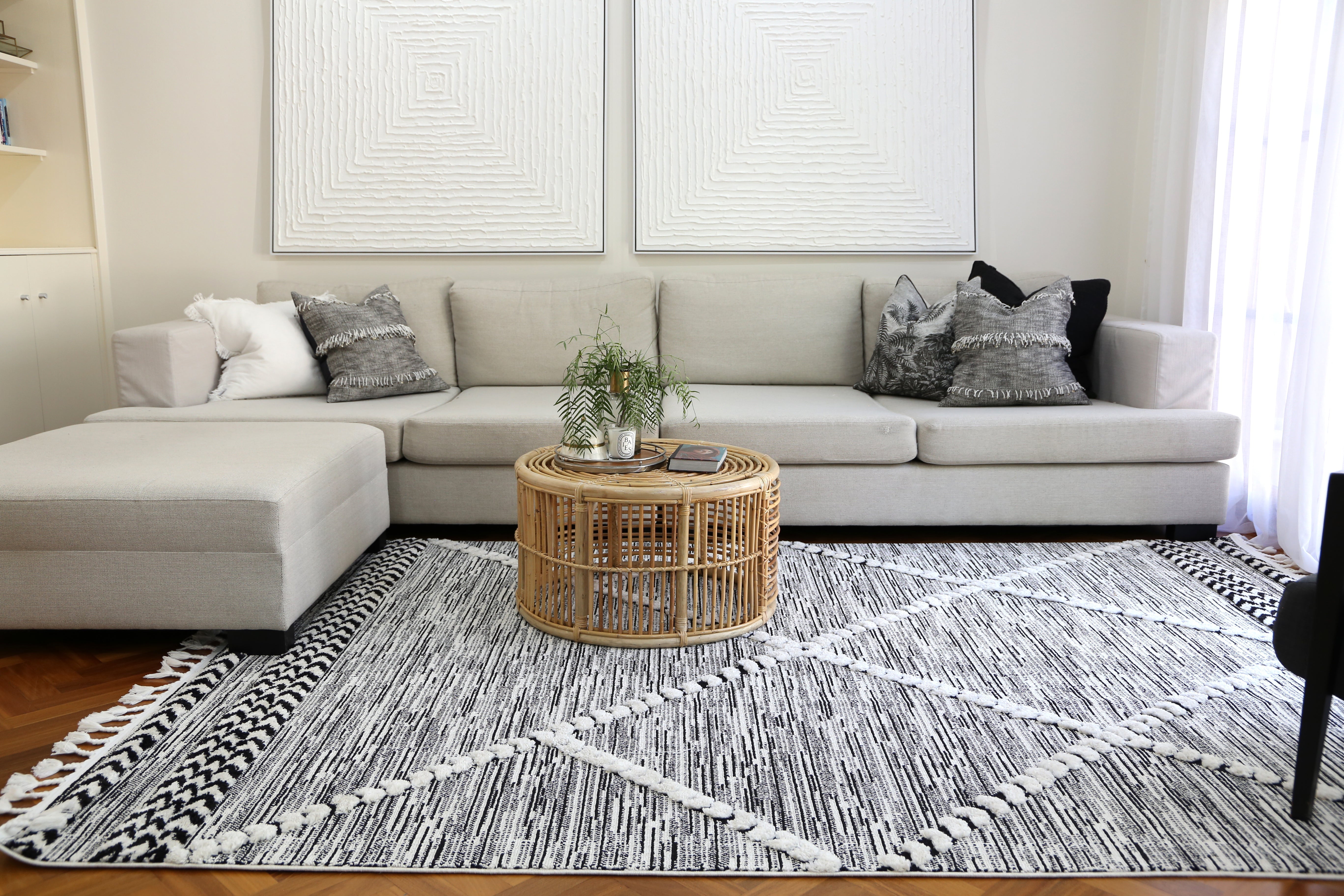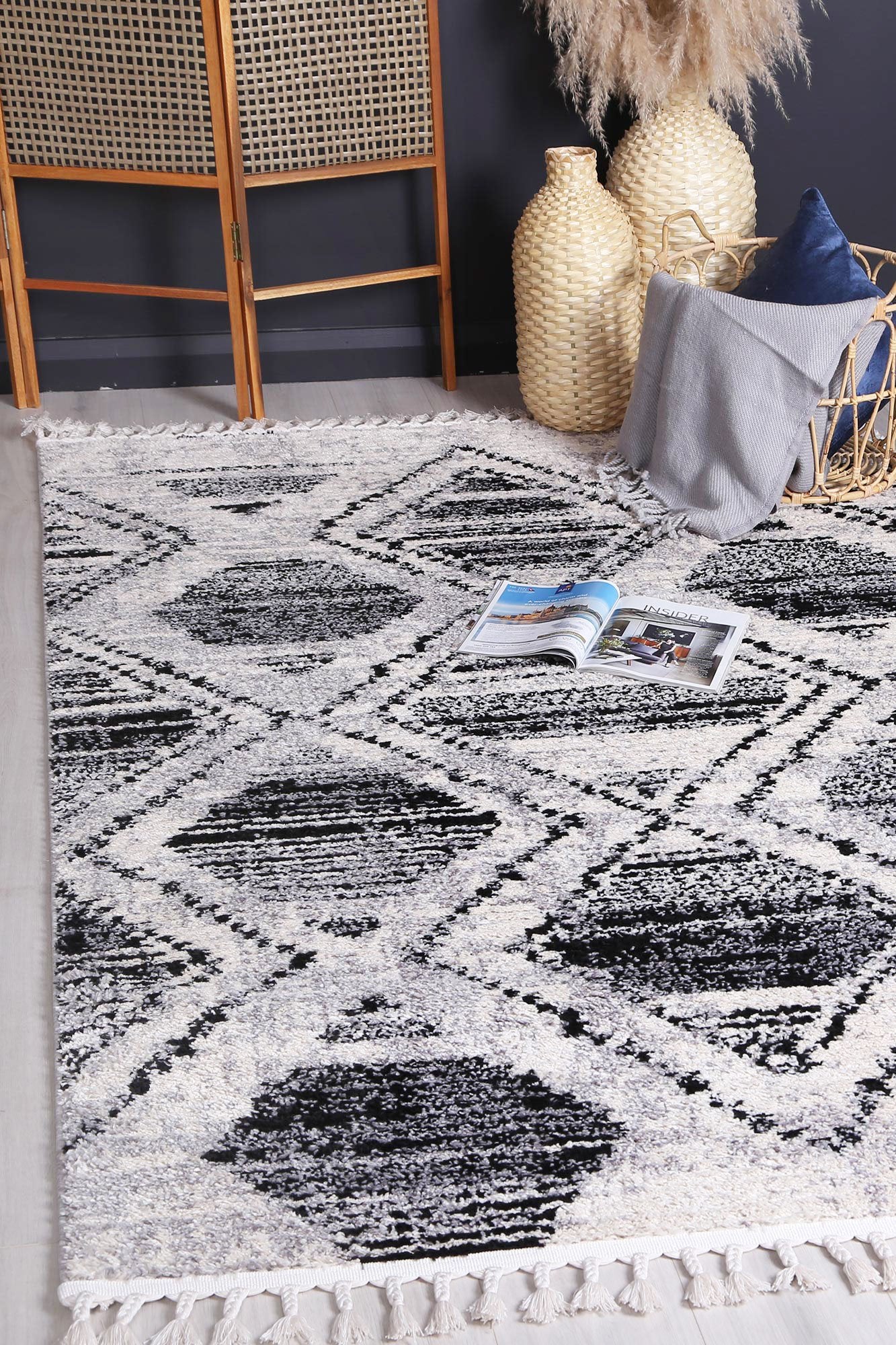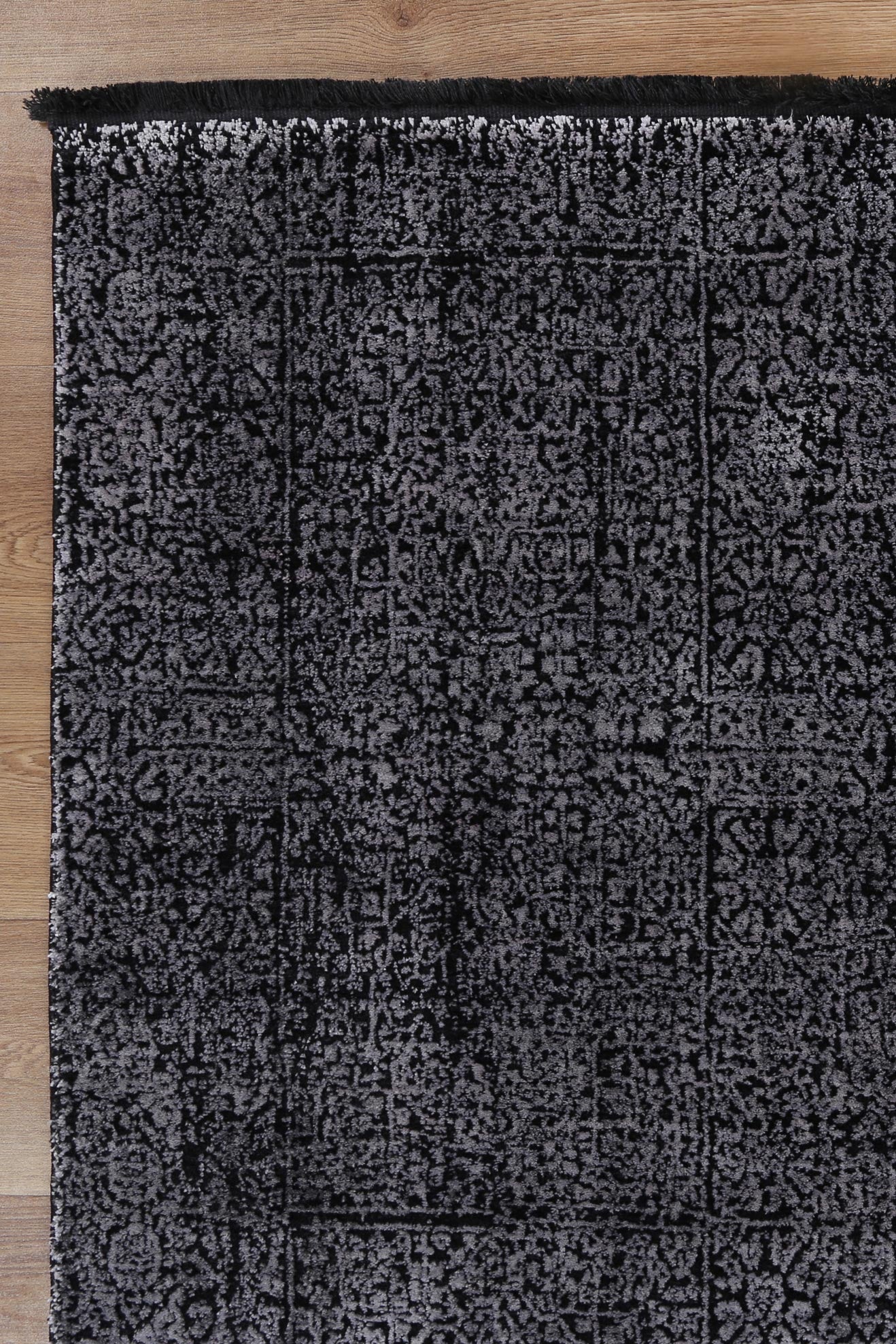 Featuring deep, rich hues and intricate patterns, these rugs add luxury and style to any space. Inspired by film noir, each piece exudes opulence with shades of black, charcoal, and deep greys accented by subtle metallic and jewel tones.