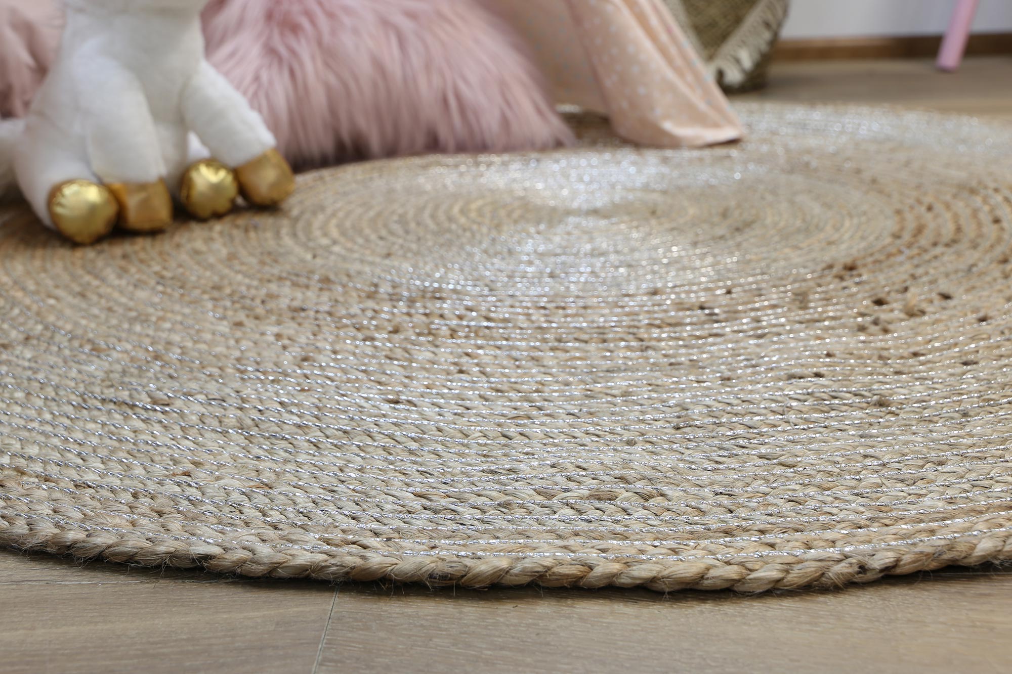 Zari Silver Jute Round Rug